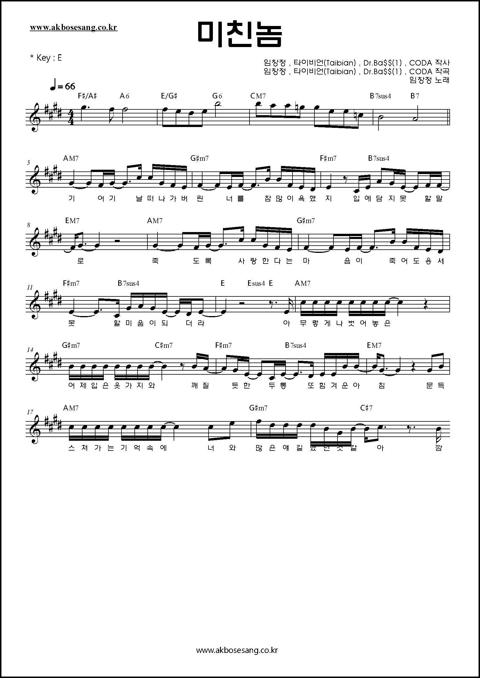 지금 바로 '악보세상'에서 임창정의 '미친놈' 악보를 만나보세요! 👇